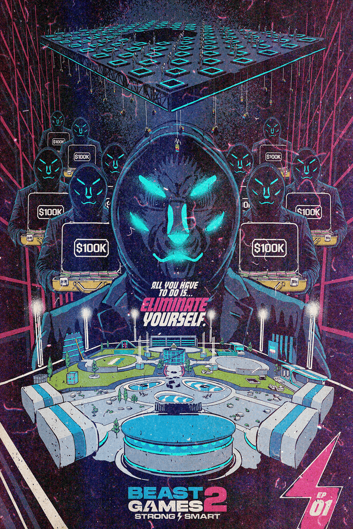 This officially licensed Episode 1 poster captures the tension and psychological pressure of Beast Games Season 2, setting the tone for the competition from the very first challenge.